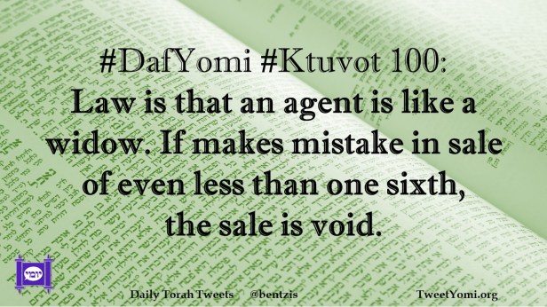 DafYomi, Ktuvot #DafYomi #Ktuvot 100 Date: February 8, 2023Author: netanelspitz #DafYomi #Ktuvot 100: Law is that an agent is like a widow. If makes mistake in sale of even less than one sixth, the sale is void. Share this: Share on X (Opens in new window) X Share on Facebook (Opens in new window) Facebook Like Loading... Related