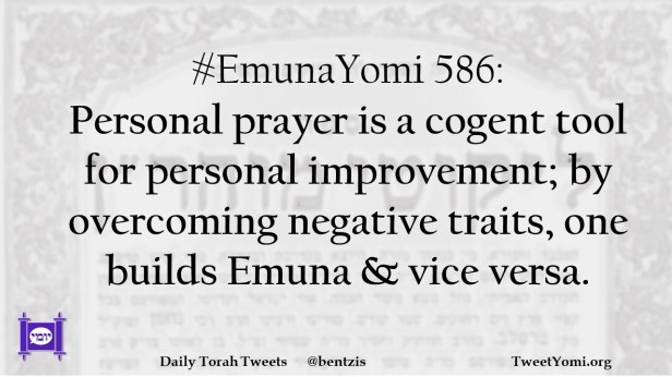 #EmunaYomi 586: Personal prayer is a cogent tool for personal improvement; by overcoming negative traits, one builds Emuna & vice versa.