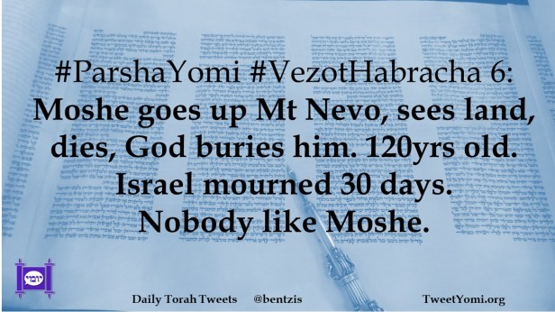 #ParshaYomi #VezotHabracha 6: Moshe goes up Mt Nevo, sees land, dies, God buries him. 120yrs old. Israel mourned 30 days. Nobody like Moshe