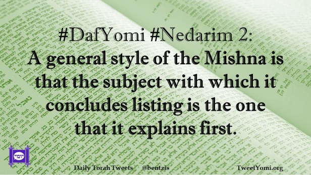 DafYomi, Nedarim #DafYomi #Nedarim 2 Date: February 13, 2023Author: netanelspitz #DafYomi #Nedarim 2: A general style of the Mishna is that the subject with which it concludes listing is the one that it explains first. Share this: Share on X (Opens in new window) X Share on Facebook (Opens in new window) Facebook Like Loading... Related