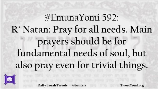 #EmunaYomi 592: R’ Natan: Pray for all needs. Main prayers should be for fundamental needs of soul, but also pray even for trivial things.