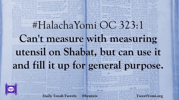 HalachaYomi #HalachaYomi OC 323:1 Date: February 13, 2023Author: netanelspitz #HalachaYomi OC 323:1 Can’t measure with measuring utensil on Shabat, but can use it and fill it up for general purpose. Share this: Share on X (Opens in new window) X Share on Facebook (Opens in new window) Facebook Like Loading... Related