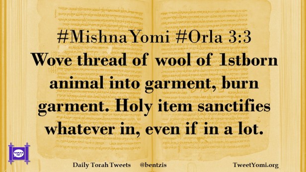 #MishnaYomi #Orla 3:3 Wove thread of wool of 1stborn animal into garment, burn garment. Holy item sanctifies whatever in, even if in a lot.