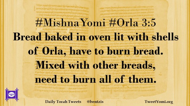 #MishnaYomi #Orla 3:5 Bread baked in oven lit with shells of Orla, have to burn bread. Mixed with other breads, need to burn all of them.