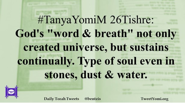 #TanyaYomiM 26Tishre: God’s “word & breath” not only created universe, but sustains continually. Type of soul even in stones, dust & water.