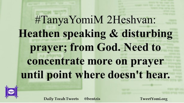 #TanyaYomiM 2Heshvan: Heathen speaking & disturbing prayer; from God. Need to concentrate more on prayer until point where doesn’t hear.