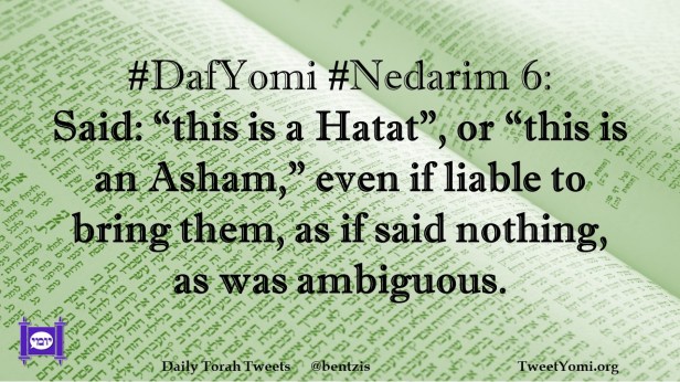 DafYomi, Nedarim #DafYomi #Nedarim 6 Date: February 14, 2023Author: netanelspitz #DafYomi #Nedarim 6: Said: “this is a Hatat”, or “this is an Asham,” even if liable to bring them, as if said nothing, as was ambiguous. Share this: Share on X (Opens in new window) X Share on Facebook (Opens in new window) Facebook Like Loading... Related