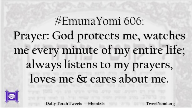 #EmunaYomi 606: Prayer: God protects me, watches me every minute of my entire life; always listens to my prayers, loves me & cares about me.