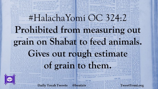 #HalachaYomi OC 324:2 Prohibited from measuring out grain on Shabat to feed animals. Gives out rough estimate of grain to them.