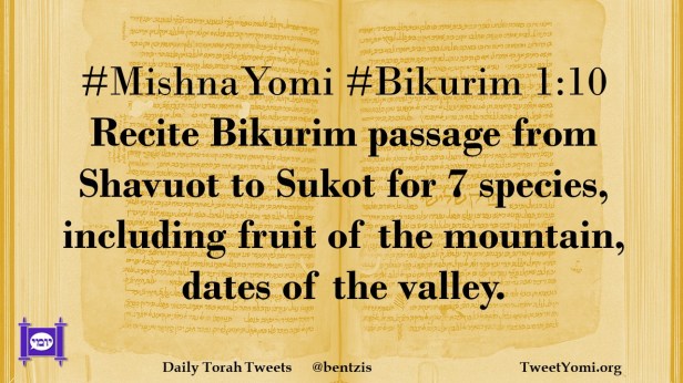 #MishnaYomi #Bikurim 1:10 Recite Bikurim passage from Shavuot to Sukot for 7 species, including fruit of the mountain, dates of the valley.