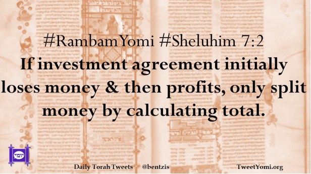#RambamYomi #Sheluhim 7:2 If investment agreement initially loses money & then profits, only split money by calculating total.