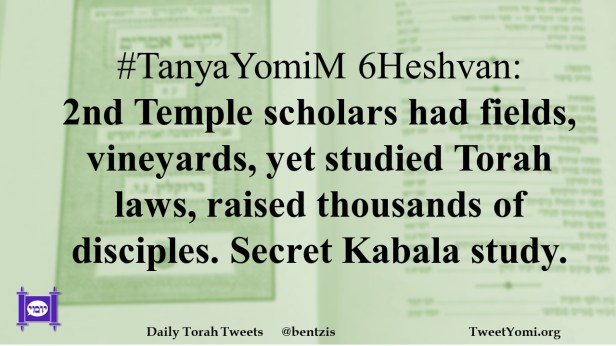#TanyaYomiM 6Heshvan: 2nd Temple scholars had fields, vineyards, yet studied Torah laws, raised thousands of disciples. Secret Kabala study.