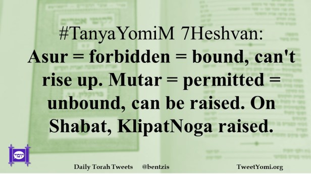 #TanyaYomiM 7Heshvan: Asur = forbidden = bound, can’t rise up. Mutar = permitted = unbound, can be raised. On Shabat, KlipatNoga raised.