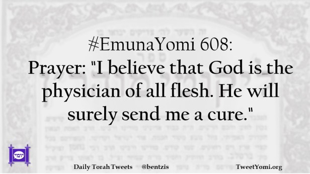 EmunaYomi #EmunaYomi 608 Date: February 15, 2023Author: netanelspitz #EmunaYomi 608: Prayer: “I believe that God is the physician of all flesh. He will surely send me a cure.” Share this: Share on X (Opens in new window) X Share on Facebook (Opens in new window) Facebook Like Loading... Related