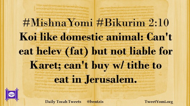 #MishnaYomi #Bikurim 2:10 Koi like domestic animal: Can’t eat helev (fat) but not liable for Karet; can’t buy w/ tithe to eat in Jerusalem.