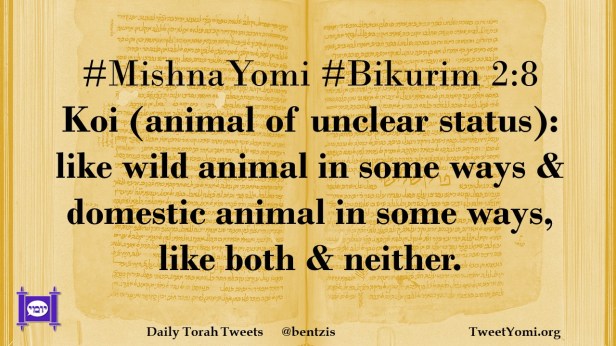 #MishnaYomi #Bikurim 2:8 Koi (animal of unclear status): like wild animal in some ways & domestic animal in some ways, like both & neither.