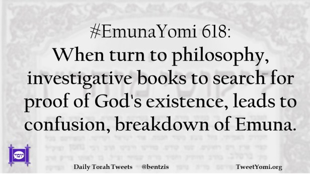 #EmunaYomi 618: When turn to philosophy, investigative books to search for proof of God’s existence, leads to confusion, breakdown of Emuna.
