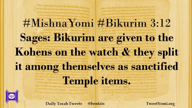 #MishnaYomi #Bikurim 3:12 Sages: Bikurim are given to the Kohens on the watch & they split it among themselves as sanctified Temple items.