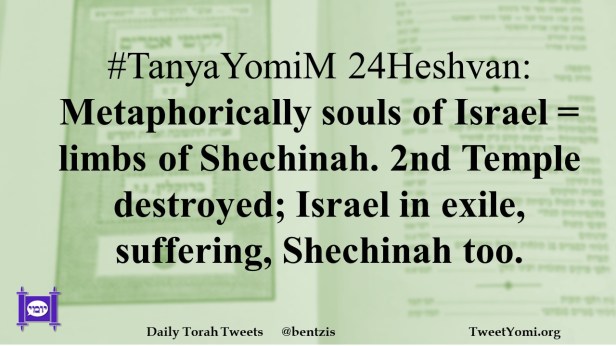 #TanyaYomiM 24Heshvan: Metaphorically souls of Israel = limbs of Shechinah. 2nd Temple destroyed; Israel in exile, suffering, Shechinah too.