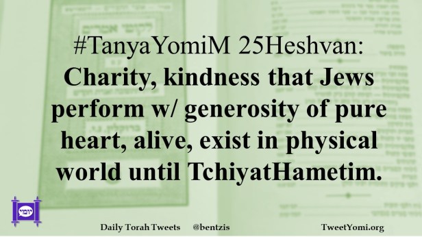#TanyaYomiM 25Heshvan: Charity, kindness that Jews perform w/ generosity of pure heart, alive, exist in physical world until TchiyatHametim.