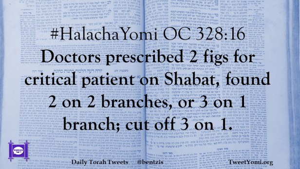 #HalachaYomi OC 328:16 Doctors prescribed 2 figs for critical patient on Shabat, found 2 on 2 branches, or 3 on 1 branch; cut off 3 on 1.