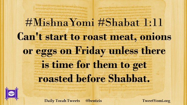 #MishnaYomi #Shabat 1:11 Can’t start to roast meat, onions or eggs on Friday unless there is time for them to get roasted before Shabbat.
