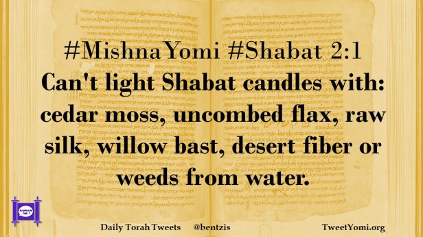 #MishnaYomi #Shabat 2:1 Can’t light Shabat candles with: cedar moss, uncombed flax, raw silk, willow bast, desert fiber or weeds from water.
