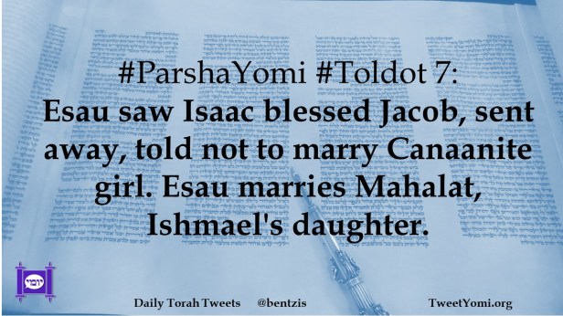#ParshaYomi #Toldot 7: Esau saw Isaac blessed Jacob, sent away, told not to marry Canaanite girl. Esau marries Mahalat, Ishmael’s daughter.