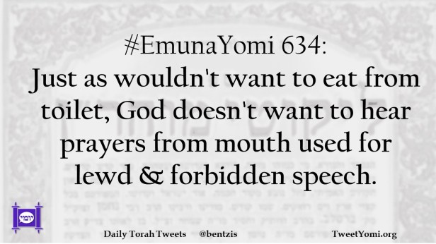 #EmunaYomi 634: Just as wouldn’t want to eat from toilet, God doesn’t want to hear prayers from mouth used for lewd & forbidden speech.