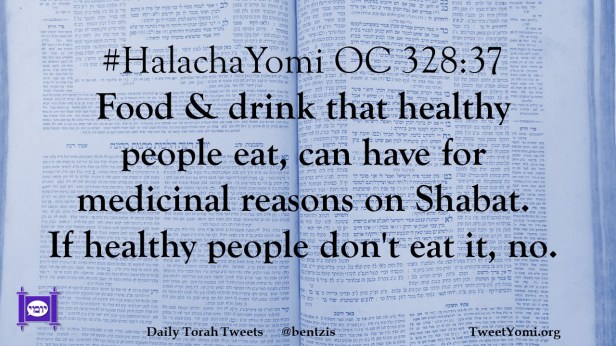 #HalachaYomi OC 328:37 Food & drink that healthy people eat, can have for medicinal reasons on Shabat. If healthy people don’t eat it, no.