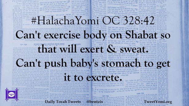 #HalachaYomi OC 328:42 Can’t exercise body on Shabat so that will exert & sweat. Can’t push baby’s stomach to get it to excrete.