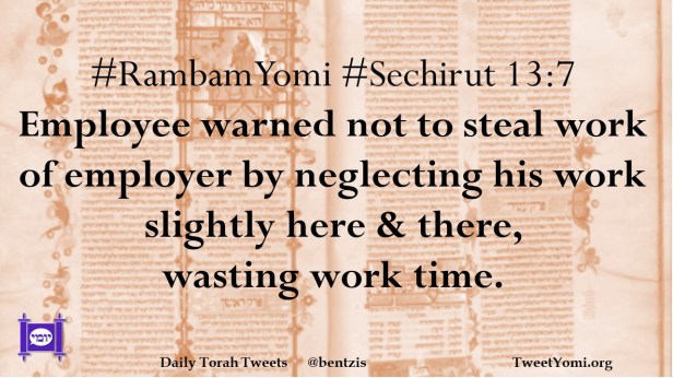 #RambamYomi #Sechirut 13:7 Employee warned not to steal work of employer by neglecting his work slightly here & there, wasting work time.