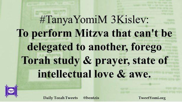 #TanyaYomiM 3Kislev: To perform Mitzva that can’t be delegated to another, forego Torah study & prayer, state of intellectual love & awe.