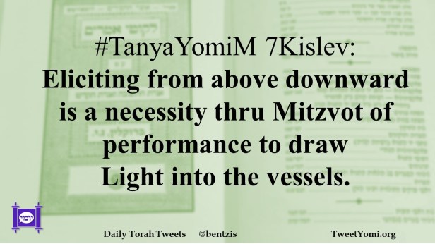 #TanyaYomiM 7Kislev: Eliciting from above downward is a necessity thru Mitzvot of performance to draw Light into the vessels.