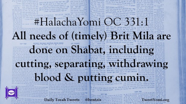 #HalachaYomi OC 331:1 All needs of (timely) Brit Mila are done on Shabat, including cutting, separating, withdrawing blood & putting cumin.