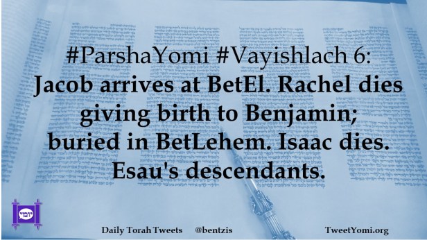 #ParshaYomi #Vayishlach 6: Jacob arrives at BetEl. Rachel dies giving birth to Benjamin; buried in BetLehem. Isaac dies. Esau’s descendants.