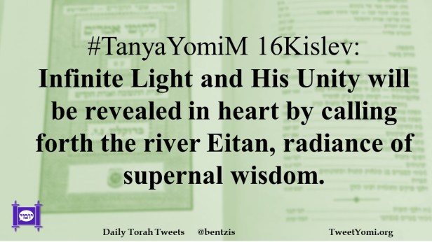 #TanyaYomiM 16Kislev: Infinite Light and His Unity will be revealed in heart by calling forth the river Eitan, radiance of supernal wisdom.