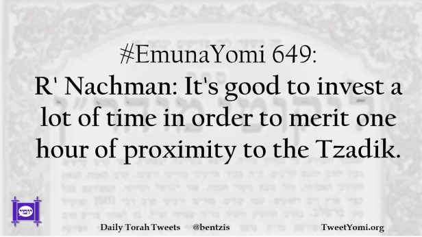 EmunaYomi #EmunaYomi 649 Date: February 23, 2023Author: netanelspitz #EmunaYomi 649: R’ Nachman: It’s good to invest a lot of time in order to merit one hour of proximity to the Tzadik. Share this: Share on X (Opens in new window) X Share on Facebook (Opens in new window) Facebook Like Loading... Related