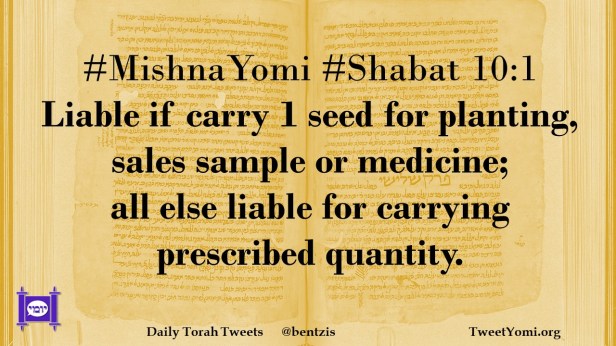 #MishnaYomi #Shabat 10:1 Liable if carry 1 seed for planting, sales sample or medicine; all else liable for carrying prescribed quantity.