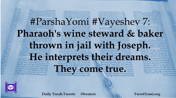 #ParshaYomi #Vayeshev 7: Pharaoh’s wine steward & baker thrown in jail with Joseph. He interprets their dreams. They come true.