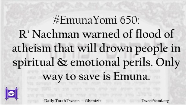 #EmunaYomi 650: R’ Nachman warned of flood of atheism that will drown people in spiritual & emotional perils. Only way to save is Emuna.