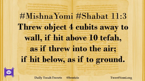 #MishnaYomi #Shabat 11:3 Threw object 4 cubits away to wall, if hit above 10 tefah, as if threw into the air; if hit below, as if to ground.