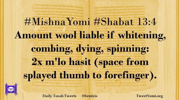 #MishnaYomi #Shabat 13:4 Amount wool liable if whitening, combing, dying, spinning: 2x m’lo hasit (space from splayed thumb to forefinger).