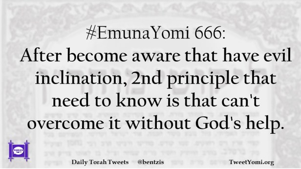 #EmunaYomi 666: After become aware that have evil inclination, 2nd principle that need to know is that can’t overcome it without God’s help.