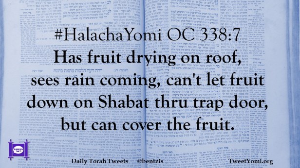 #HalachaYomi OC 338:7 Has fruit drying on roof, sees rain coming, can’t let fruit down on Shabat thru trap door, but can cover the fruit.