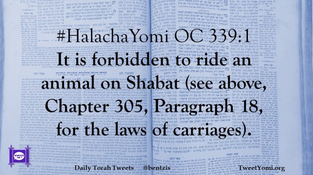 #HalachaYomi OC 339:1 It is forbidden to ride an animal on Shabat (see above, Chapter 305, Paragraph 18, for the laws of carriages).