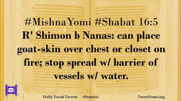 #MishnaYomi #Shabat 16:5 R’ Shimon b Nanas: can place goat-skin over chest or closet on fire; stop spread w/ barrier of vessels w/ water.