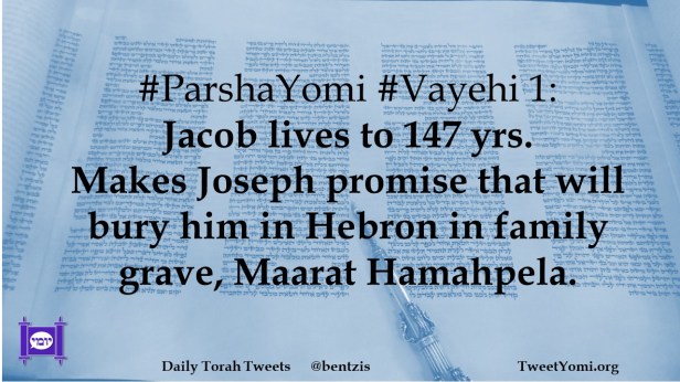 #ParshaYomi #Vayehi 1: Jacob lives to 147 yrs. Makes Joseph promise that will bury him in Hebron in family grave, Maarat Hamahpela.