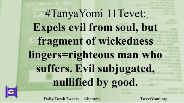 #TanyaYomi 11Tevet: Expels evil from soul, but fragment of wickedness lingers=righteous man who suffers. Evil subjugated, nullified by good.