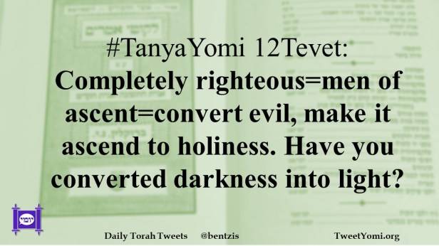 #TanyaYomi 12Tevet: Completely righteous=men of ascent=convert evil, make it ascend to holiness. Have you converted darkness into light?